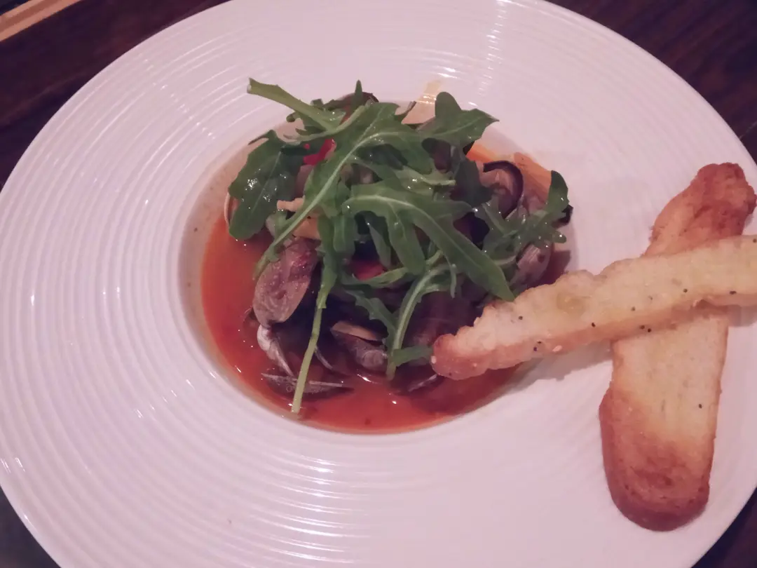 清酒蒜片辣椒卡拉布里亞辣香腸煮美國馬尼拉蜆