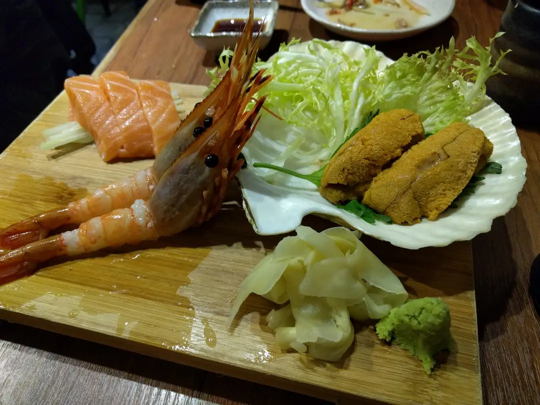 Seafood platter (shrimp, urchin, salmon)
