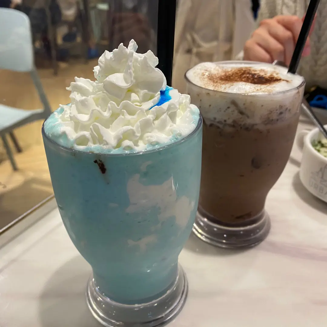 藍糖乳酸雲朵沙冰(左)及鮮奶朱古力(右)
