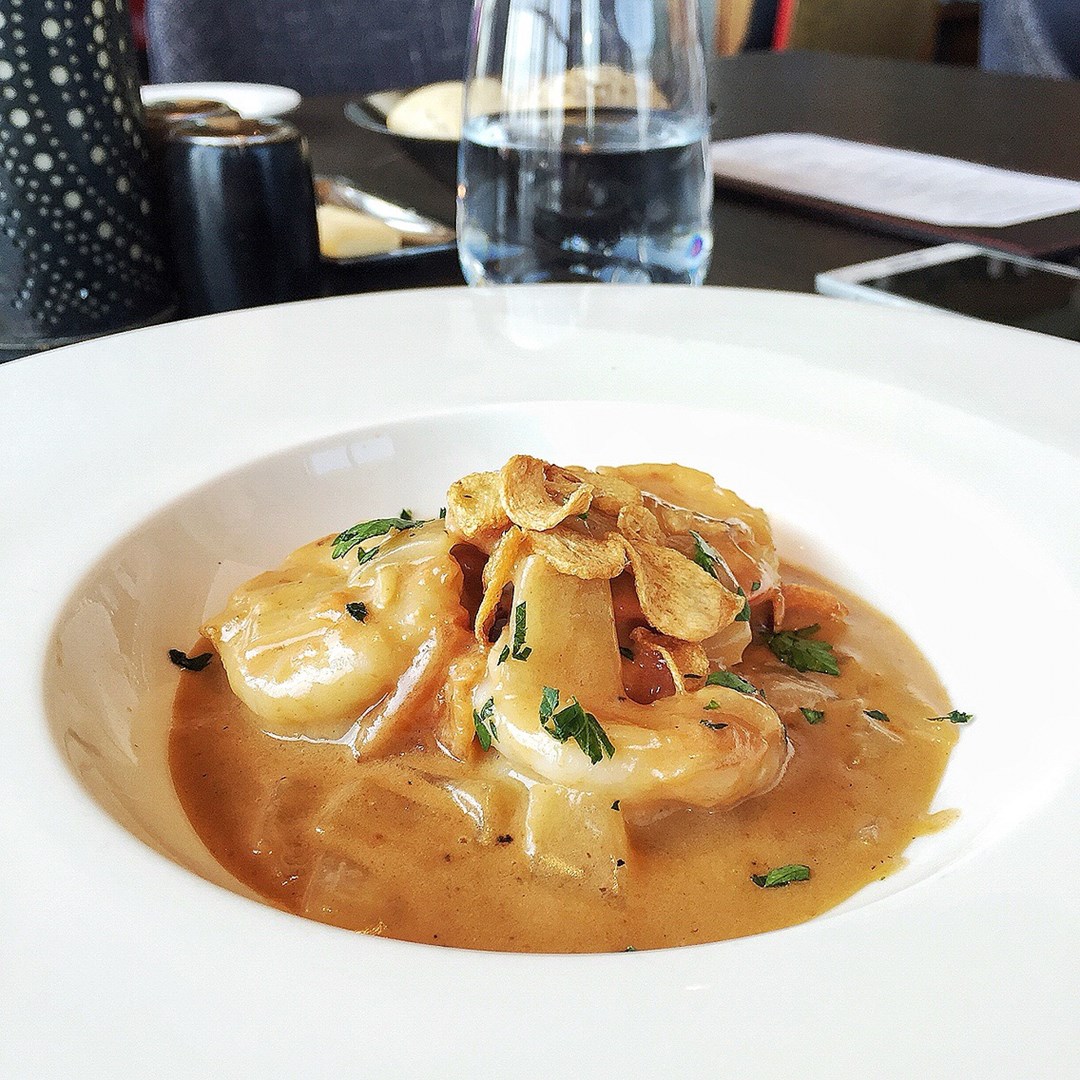 Shrimp with lobster bisque