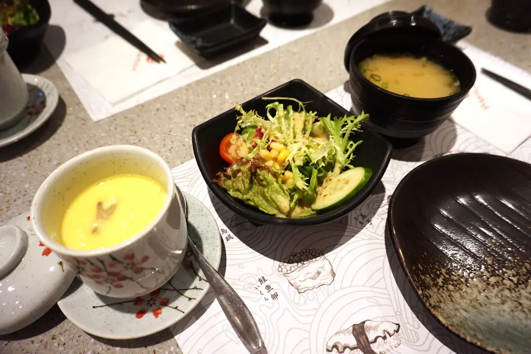 田園沙律、味噌湯、茶碗蒸