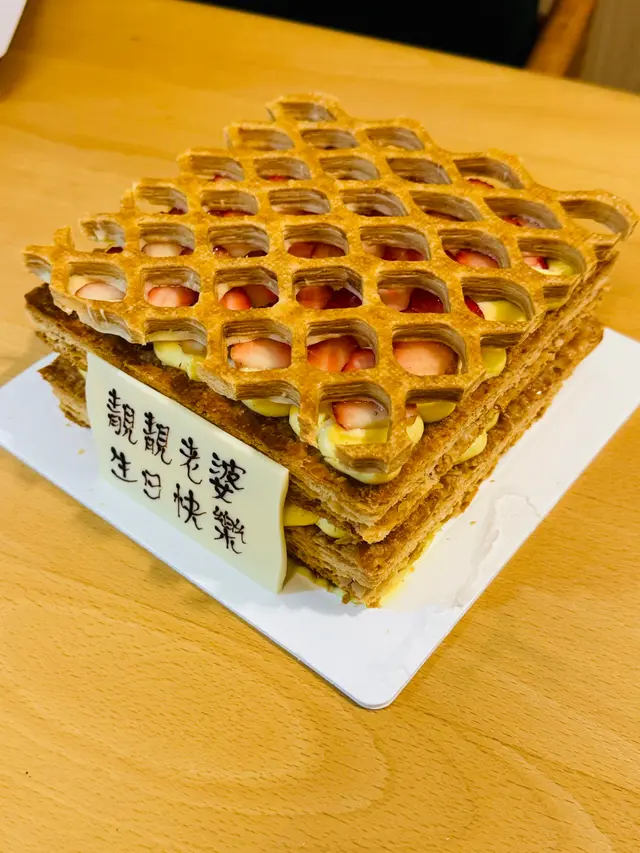 為家人慶生,第一次訂這家的芒果拿破崙蛋糕,大大大大大驚喜!取餅時拿上手,重量超乎想像,份量十足!味道剛剛好,鬆化不太甜,芒果和吉士配合很很好,亦不會很重牛油味,一點都不膩,易入口,家人晚飯吃得飽飽的,都把這壓軸蛋糕全清。另外多訂了一個紅桑子石榴慕絲cake,有獨立小盒子,很細心。聚會前兩晚在網店下單,簡單準確,第二天一早就收到whatsapp確認,很放心;因為第一次光顧,有小疑問,回覆很快,很讚。還會再來!