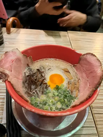 新白拉面姐姐话系再劲啲猪骨浓汤,用西班牙伊比利亚猪。一嚟到系好奶白色既豚骨汤底,好浓郁,但有少少咸,整体都好食,不过呢个就唔配葱配紫洋葱,块猪肉都好好食,唔嚡,似用慢煮方法。