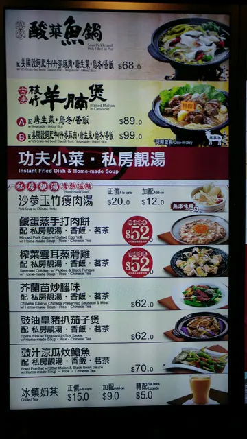 晚餐:腊肠排骨饭套餐,肥牛粉丝煲套餐 包赤小豆汤 中茶 价钱合理 味道不俗 晚上八点后才到 有部分餐已经售罄 晚上人不算多 座位舒服 有Waiter送餐 连锁店来说水准不错 会再去。I and my friend went to Super Super at the dinner time, the taste is good, with reasonable price. Not many people know about this place, so we sit comfortably. there is waiter to send the meal to your table. warm service. …查看更多