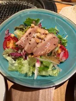 位於尖東中心地帶一座高級商業大廈既地下裝修以日系風格 多以木為主題座位闊落唔逼夾,燈光柔和幾舒服抽風系統做得唔錯,食完燒肉都唔會成身油煙味今次簡左中間價位既燒肉套餐貪佢咩都包晒 乜都可以試吓慢煮鴨胸沙律 -鴨胸夠嫩唔柴,皮脆肉香,沙律菜新鮮爽脆醬汁酸甜開胃,份量適中,做前菜啱啱好季節刺身拼盘 -三文魚肥美夠油香,鯛魚爽口清甜嚴選黒毛和牛二種 -三筋肉油花均勻,燒完入口即溶,牛味超濃和尚頭肉質軟嫩得嚟帶少少咬口,油脂香而不膩兩款都係高質和牛,建議唔好燒太熟,五成熟就最正!配埋佢哋自家製醬汁或者少少鹽已經好夠味濕式熟成和牛一種類 -肉質軟淋得嚟牛味濃郁,咬落去仲有肉汁爆出嚟燒到五成熟就最perfect雞橫膈膜 肉質爽脆得嚟帶少少嚼勁,燒到微焦嘅邊位最正配埋檸檬汁或者七味粉簡直一流平時好少見呢個部位,值得試吓!不過要掌握好火候,過火會韌啲㗎蒜片香蔥和牛薄燒 -和牛薄切夠晒嫩滑,蒜片炸到金黃脆口夾埋香蔥一齊食超惹味 建議包住飯食,啖啖牛油香,邪惡但滿足!海膽和牛煲仔飯 -一上枱就聞到勁香煲仔飯焦香面頭鋪滿鮮甜嘅海膽同油潤嘅和牛片仲有蛋黃撈埋一齊食,口感creamy到不得了! 和牛片嫩滑得嚟牛味濃,海膽新鮮冇腥味飯底吸晒牛油同海膽精華,仲有啲飯焦脆卜卜要趁熱食,凍咗會膩少少牛蒡黑豚肉味噌湯 -湯底濃郁唔死鹹,豚肉片嫩滑仲有咬口牛蒡絲爽脆帶甜,飲完成身暖粒粒最驚喜係份量足料,唔似其他店得兩片豚肉咁孤寒食完燒肉飲返碗,perfect池!…查看更多