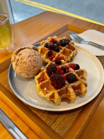 Waffle有焦糖系面,食落都几甜。好彩我地叫咗summer berries,每一粒都好酸,但刚刚好中和返啲焦糖既甜味。gelato劲好食,焦糖味香甜中间仲有曲奇🍪 真系好值得试下佢地既gelato