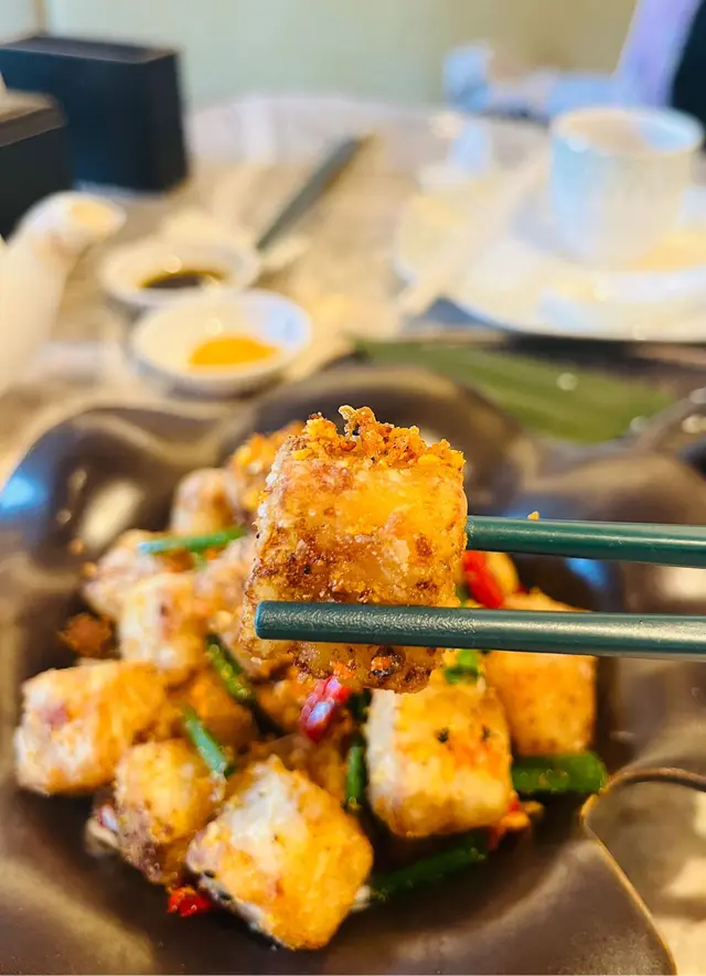 上陽樓取名靈感來自御膳房,融合了皇帝御膳房的設計, 粉綠色為主調, 配上清麗的壁畫,風雅脫俗, 環境相當舒適寧靜。 雪蛤水鴨湯 $78(位)熱湯清徹味濃,湯頭鮮甜,用料十足, 水鴨燉至綿軟鮮嫩, 滑捋捋的 雪蛤, 養顏又滋補, 女士摯愛的湯水。 冶味粉絲焗大蝦球$188(例) 大蝦球入口鮮味爽彈,啖啖濃郁惹味, 充滿鑊氣 , 粉絲吸收了 蝦汁的鮮香, 特別好吃 。鎮江肴蹄 (水晶肉)$88 江蘇鎮江傳統名菜 , 晶瑩剔透像水晶, 入口滑溜 Q 彈, 咸鮮十足。金蒜粉絲蒸大元貝兩隻 $96 厚身圓潤連殼大元貝, 表面鋪滿金蒜及粉絲, 香氣十足 ,元貝鮮味 滑溜, 加上金蒜香氣提鮮, 惹味開胃,粉絲吸收蔥蒜芳香, 特別滋味 好吃。芒果卷冰冰涼涼的芒果卷 , 外層煙韌柔軟,內餡是熟透的芒果粒及香滑的鮮忌廉, 每一口都是芒果的甜香, 香甜冰涼, 令人回味無窮。…查看更多