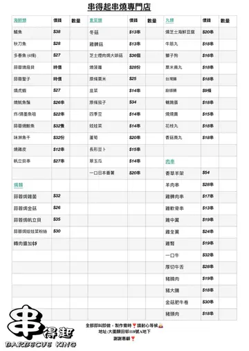 是日约咗朋友到大围gthering,我哋拣咗一间好多年前帮衬过嘅串烧店,细问之下原来已经转手,又可以当一间新嘅舖头嚟试喇😝老板娘都十分健谈,介绍咗我哋食新鲜嘅嘢,同埋叫我哋唔好叫咁多可以试食咗先烧扇贝🐚呢个老板娘推介一定要试,今日新鲜买即刻烧 ,唔会烧得过火,好嫩滑鲜甜 正左起翠玉瓜,三文鱼腩条,烧烟肉肠仔翠玉瓜 🥗鲜甜冇渣三文鱼腩条🐟外脆内软,而且保留肉汁,正烧烟肉肠仔送酒必备烧风琴豆串外面脆卜卜,充满豆香,入边烟靭 很喜欢烧鸡皮🐥呢个真系要必点 如果你食鸡皮的话烧到好似薯片咁,一啲油分都冇 加埋佢啲辣粉(真系好辣) 令人停不了口烧茄子🍆茄子烧得香口绵密,好钟意呢个口感烧多春鱼🐠鱼皮烧得脆卜卜,带鱼油焦香焗蚬蚬虽然唔系好大只,但系只只都饱满,粒粒肉都鲜甜焗金菇🍄🟫呢个就普通啲,同埋佢成棵烧,要慢慢分返开佢先食,有啲黐牙,不过佢蒜蓉牛油等香料都落得好足烧鸡翼 🐤烧猪颈肉🐷个人认为烧猪颈肉都系必点,烧得外层甘香脆口 ,内里Juicy,而且好够味 好想食多几串烧菠萝🍍当饭后甜品很好,烧过的菠萝份外香甜,而且带点微酸,为整餐饭画上圆句不过我亦觉得系因为同朋友食,觉得份外好味同开心 你们说是吗?🌹 …查看更多