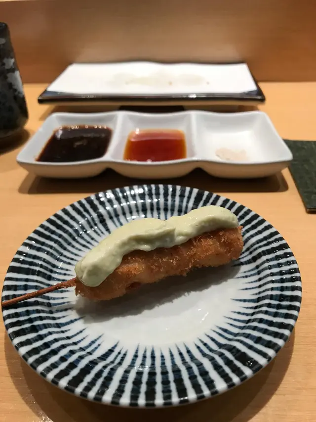 Delicious 串扬 🍢🍡🍢! I have been wanted to try this restaurant! Best is the liver sauce with abalone and the 白子is so creamy! Scallop with salmon roe great for photo, eel and squid a bit dry, prawn is fried to perfection! Wagyu beef is tender. Wash down nicely with a bottle of sake!🍶之前已经好耐标签咗想上嚟。终于一个礼拜前订位品尝。同朋友9:30左右嚟到。日本人主理,服务周到,坐吧枱一路食一路有倾有讲。一开始便开始点了七至八样串扬。最好食是鲍鱼配肝酱,白子好Creamy,带子配鱼子三文鱼子最啱打卡,银杏白果外脆内嫩,鸡翼皮脆有少少蜜糖味道,还有叫了鹌鹑蛋、白鳝同鱿鱼,和牛非常嫩滑。最后加点炸虾,脆浆及火候啱啱好,虾头见到乍得脆卜卜,但朋友食咗唔知道怎样,配合一支清酒完美配合。…查看更多