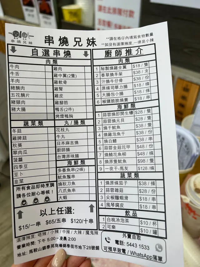 身為馬友,喺馬鞍山呢個美食沙漠,想搵一間串燒店都好難🥲無意中發現咗一個商場有間串燒店,同媽媽一齊去咗試~120/10串,唔理係咩肉,全部價錢統一👍🏻要咗唔辣,事關之後可以自己落調味料!牛類同豬類都每樣各一,亦都叫咗一串雞肉同羊肉,個人來講最推薦分別係 :豬頸肉 - 有兩舊,唔係厚切,個爽口彈牙羊肉 - 唔臊,好冧雞肉 - 外皮微脆,內則柔嫩多汁雞髀菇 - 有兩舊,其中一舊鬆咗出嚟,所以張相見唔到,夠味,而且咬落爆汁,唔會燒到乾晒香草燒羊架 $38Keep住juciy,好容易咬開燒干魷魚 $38一塊塊乾身嗰種,少少硬,感覺有少少鹹魚嘅鹹香味燒原條茄子 $38好足料,連個頭都俾埋我哋😂,用咗比較大嘅蒜粒,食晒茄子啲蒜頭都未食晒,可以自己再加多少少孜然粉更加好味呢間舖頭開到凌晨兩點,馬鞍山貓頭鷹的福音,不過環境就熱咗啲,位置於商場外面,但都有瓦遮頭,啱晒秋涼嘅天氣同朋友坐喺度邊吹水邊食!查看更多