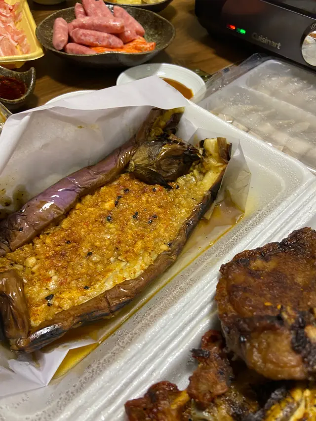 晚上食得未夠飽,所以一嚐錦泰的串燒。可以用whatsapp落單,非常方便,而且秒回,可以早一點落單,即叫即燒,就不用在街上呆等,約20分鐘的燒烤時間,是否合理就由閣下決定。辣度亦可以由小小辣到勁辣,我們點選了:1條 茄子1串五花腩片1串雞腎1串秋葵全部小小辣最出色是燒茄子,$38雖然貴,但大大條茄子鋪滿整個飯盒,而囗加入大量蒜蓉,即使帶回家,仍保存熱度,非常juicy,即使燒烤過,茄子亦充滿水份,不會感覺乾身。秋葵一客$15有兩枝,燒起來少了滑潺潺的感覺,但同樣保留了蔬菜類的水份,同樣值得一讚。而五花腩片及雞腎都美味,但較為「削」,可能燒過就顯得乾身,肉類比蔬菜較乾身及硬。查看更多