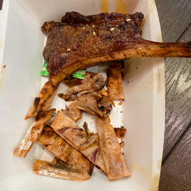 平時食串燒嘅餐廳都唔算好多估唔到大水坑呢度居然會有質素仲要唔錯!.💎 $120/十串餐廳串燒選擇有勁多😍肉類, 海鮮同蔬菜都有我地叫左牛舌, 羊肉, 豬頸肉串雞中翼(2隻), 雞軟骨雞腎, 雞脾菇, 翠肉瓜同花枝丸每一個串燒都好香口並略帶烤焦,好有香味🤣獨特既炭烤香味配埋鮮嫩多汁肉質勁夾另外,餐廳亦提供各種調味料同味粉😆我地就揀左孜然粉令串燒味道更加豐富😎.💎 $38 汁燒牛仔骨架(份)牛仔骨架肉質緊實含有好豐富既肉汁🥳係炭火上燒烤之後,食入口表面有酥脆既感覺口感十分豐富🤩.💎 $38 燒雞泡魚乾(份)呢款做小食真係好正口感酥脆外焦🥰散發出淡淡既炭烤香味帶有少少鹹味同獨特嚼勁.💎 $38 燒原條茄子蒜蓉舖滿整條茄子茄子肉軟綿入味十分惹味🤣🥰同朋友share就岩岩好查看更多