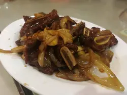 因為朋友介紹,特地前往光顧的這間「九龍城冰室」,售賣的食品款式與大部分其他冰室、茶餐廳沒有太大的分別,不過幾道店中推介的辣菜,就的確水準不錯,令人回味。先是最受我與其他嗜辣朋友歡迎的「重慶麻辣烤魚」(原價$238,試食價$188),據冰室老闆所言,用的是來自泰國的巴沙魚,大大的一條,甚有肉地。雖然我們點的只是正常辣度,沒有加辣,原來辣勁已經不弱,特別是那些索味力強勁的豆卜、金菇等物,更是這烤魚的最佳隊友,再加上雲耳、芫荽等物,讓我與其他嗜辣之友吃得不亦樂乎。相比起烤魚,「城寨風味麻辣雞煲」($188/隻)雖同樣有麻辣的成份,但因為我們叫的是微辣,所以雖然吃到最後,辣勁還是愈來愈強,還是較能讓人接受,就連比我還更吃不得辣的友人,也可以淺嚐。這麻辣雞煲的雞固然是主角,但大大粒的乾蔥同樣大受歡迎呢!這晚吃的辣菜還有冰室推介,推許為一試難忘的「霸王香辣炒飯」($68) 。這炒飯的賣點是它以多款不同品種辣椒製成的辣醬炒製而成,炒得既香且辣,加上飯粒乾身不油,配以燒雞肉與菜粒,是一道別有特色,惹味開胃的炒飯。當然,我與一眾朋友們吃的不止這些辣菜,也有其他菜式。「蜜椒薯仔雞翼」的主角本來應是雞翼,但雞翼的鋒頭全被外脆內軟的薯仔蓋過,可真令人意想不到。「洋蔥牛仔骨」味道濃甜,其實都幾好味,不過如果能夠減少一點甜,加多一點鹹,應該會更加好。「啫啫生菜煲」熱力四射,惹味極了,不過份量略少,就有點美中不足。值得一提的還有例湯,雖然只是簡單的「金銀菜甘筍煲豬骨」,但湯中完全沒下味精,真材實料,湯味自然,雖不太濃,但潤喉舒服。這間陳設佈置頗有懷舊風情,牆上掛有不少昔日九龍城舊啟德機場一帶老照片的「九龍城冰室」,食物水準不錯呢!查看更多