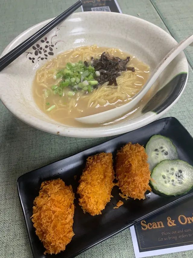 今日搵食見到駿業街街市外面有下午茶banner,$32-38金,ok,可以一試。等到2:30pm,掃qr code 落單,叫左吉列蠔豬骨湯搵麵,等左10分鐘就上枱。雖然係餓,不過好唔好食都仲分得出。睇上去覺得細碗,驚唔夠飽,不過湯底好味,食完麵再飲曬豬骨湯,有滿足感。廚房大佬同老闆娘都好客集同禮貌,埋數用八達通。走過陣見到特格時段落單有得平,計落真係好抵食。觀塘好多食店,但試伏試得太多次,真係令人好沮喪。好在食返啲平靚正既鋪頭,就開心返。查看更多