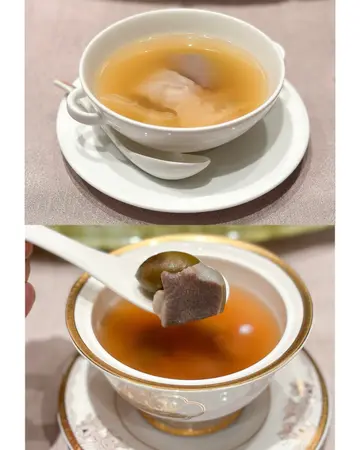 Named after the luxury spirit, Wu Liang Ye Dining is an upscale Chinese restaurant located in Causeway Bay that focuses on modern Chiu Chow dishes. 🥢 Pic 1️⃣: 金不换炖鲜鲍鱼 - $198 hkd 🐚 — Never tried Thai basil in Chinese soup before so this was super unique! Flavours went surprisingly well together and the aromas of the basil complemented the delicate flavours of the abalone nicely. The soup base was really rich, flavourful and well balanced.Pic 2️⃣: 潮汕浸花甲 (冻食) - $238 hkd— Must order here! Clams are insanely fresh and full of flavour from being soaked in a preserved fish sauce and basil. Pic 3️⃣: 百花水晶鹰鲳球 - 时价/market price 🐠 — Beautifully presented and did not disappoint. The braised pomfret is wrapped in a thin caul fat layer which gives it an undeniable aroma and unique texture. The fish had a firm texture, with a tinge of sweetness to it. Other half of the ball is a bouncy prawn filling which was super well seasoned. Pic 4️⃣: 炸普宁豆腐 & 传统炸虾枣 - $168 hkd & $160 hkd 🍤 — Another signature and must order combo. The tofu was insanely light and went so well with the savoury dipping sauce. The shrimp dumplings were well seasoned, and had a good crunch to them.Pic 5️⃣: 家乡咸鸡 (半只) - $368 hkd 🐔 — SO good! The marinade was on point and the chicken was so tender and juicy. Made with freshly grated ginger, the sauce on the side resembles what you might find in 沙姜鸡, but this one has a much fresher and lighter profile.Pic 6️⃣: 卤水鹅片 & 普宁豆腐 - $200 & $90 hkd 🪿 — Not usually a fan of goose but this changed my mind. Without the gamey flavours, the goose was really well marinated and tender. Pic 7️⃣: 香煎牙带鱼 - $100 hkd 🐟 — Ribbon fish is hard to come by nowadays so we had to get this. Perfectly pan-fried to give it that crispy exterior, the fish didn’t need much seasoning to shine through. Pic 8️⃣: 五粮液炒时蔬 - $288 hkd up 🥬— The flavours and aromas of the spirit really come out in this dish, but it’s quite sweet for a vegetable dish.Pic 9️⃣: 老橄榄炖响螺 & 胡椒咸菜鲜猪肚汤 - $288 hkd & $98 hkd 🥣 — Both soups were outstanding but the olive and sea whelk one was a nice surprise as the olive really elevated the flavours of the sea whelk and added an earthy, nutty dimension to it.Pic 🔟: 寿桃 🍑 — Buns were warm and soft, lotus paste was perfectly smooth and sweetened.…查看更多
