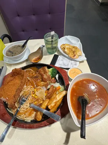 🔸铁板扒餐 ( 巴西猪扒、鲜嫩牛扒) ~ 可以任选两款扒, 我拣了猪扒和牛扒,两款都软嫩配上蒜蓉汁,味道更佳, 薯菜份量亦多,非常丰富。 🔸罗宋汤+蒜蓉包 ~ 罗宋汤酸中带甜, 配上香脆的蒜蓉包,美味双拼。 🔸惹味沙姜鸡+油香饭 ~ 沙姜鸡嫩滑美味,整道菜充满浓郁的沙姜味。 🔸油菜 &中汤 ~ 有油菜和中汤, 两者都几好味。 🔸海带绿豆沙 & 喳咋 ~ 套餐仲可以选饮品或糖水。 餐厅性价比高, 价钱亲民。🏷️温馨提示~ 整个用餐体验均属个人分享意见, 只作参考😊。 …查看更多