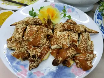 久闻荃湾工厦区内有一私房菜,性价比高,食物质素颇佳,同窗好友相约一聚,二话不说举手赞成。进入工厦后乘搭电梯到食肆,格局完全是工厂食堂布局,但地方宽敞,座位舒服,略嫌嘈杂了少许,不过大家都不会介意。内里已坐满食客,没有订座根本是没有可能吃到,预约时拣选好喜爱菜式,价钱按人头计算。店员先捧上西洋菜陈肾猪㬹汤,用料充足,汤味清润,有“家”的味道。脆皮坑腩果然名如其实外皮松脆,肉质鲜嫩。冰镇鲍鱼则略嫌韧了少许,但口感还算不错。豉油皇大花虾非常惹味,虾头有膏,肉鲜爽脆。姜葱炒蟹同样出色,肉质饱满,香味浓郁。蒜蓉粉丝蒸蛏子皇,味道可口,粉丝完全吸收汁液精华,实在不容错过。再来一道脆皮芝麻鸡,卖相吸引,同样外皮香脆,不过肉质稍为过火干少点儿。至于清蒸海鱼,可说是这顿晚饭最出色作品,鱼嫩鲜味,火喉恰当。清炒时菜简简单单,菜心腍软带少许甜味,果然够清。是夜酒醉饭饱,乐聚欢朋,惟一美中不足的是欠缺甜品,如能提供则称得上圆满。…查看更多