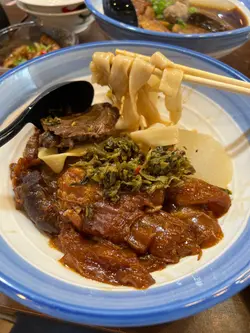 行街行到無地方去,就同男朋友早啲食晚餐,6點去到見餐廳員工食緊飯有啲唔好意思,但佢地都好熱情招呼,而且上菜速度都唔錯。📍麻辣木耳爽口木耳,帶有麻辣香味,係開胃嘅前菜📍招牌牛肉麵湯底帶有少少藥材味,感覺補身,而且湯底濃郁。大大片牛展,咬左一啖意外驚喜係好唸身,超級入味。牛筋一樣大大舊,但都係超軟身,一咬即斷,索哂湯底味,非常有水準。📍牛腩乾拌麵招牌大大塊嘅牛腩,同樣係比想像中軟唸,闊條麵吸哂牛腩嘅汁香味,即使係拌麵都唔會覺得太乾無味,充滿濃郁嘅牛味😋🔹🔹🔹🔹🔹🔹🔹🔹🔹🔹#元洲牛肉麵 (通菜街) (旺角)旺角通菜街80號地舖🔸🔸🔸🔸🔸🔸🔸🔸🔸🔸#旺角好食 #旺角食好西…查看更多