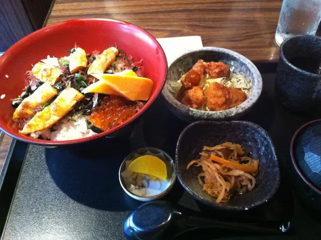 過咗lunch時間,係尖東覓食唔係難事!今期有雜誌介紹去咗一間正宗嘅日式料理醫肚,去到已經無咩人,可以啲office boys & ladies已先食一步喇所有直入有位,而啲侍應係講日文同英文嘅!餐係一set set噤上嘅,我說要三文魚親子飯餐!呢個係不明嘅前菜,食咗陣都唔知係咩嚟嘅有啲似糯米嘅口感但又無咩味!另一款前菜仲有黃瓜,本人對黃瓜無興趣,所以無食,無得評跟餐嘅麵豉湯味道較淡,唔但反而唔似平時用水沖嘅湯味,有少少魚湯味!呢個海帶沙律,有沙律菜、昆布同海帶撈胡麻醬,幾新鮮同健康主角三文魚親子飯,唔好睇碗大大,其實好淺身,所以唔駛驚太多食唔晒!刺身俾得豪氣可以啖啖三文魚同三文魚子!而刺生無腥味,三文魚子無海水味算係處理得不俗但飯就略嫌醋味不足喇,有啲硬添 啫喱甜品無咩特別,同食羅x臣嘅一樣味,但叫做令成個餐都完滿咗!成個餐,除咗三文魚親子飯之外,其他都係有待改善查看更多