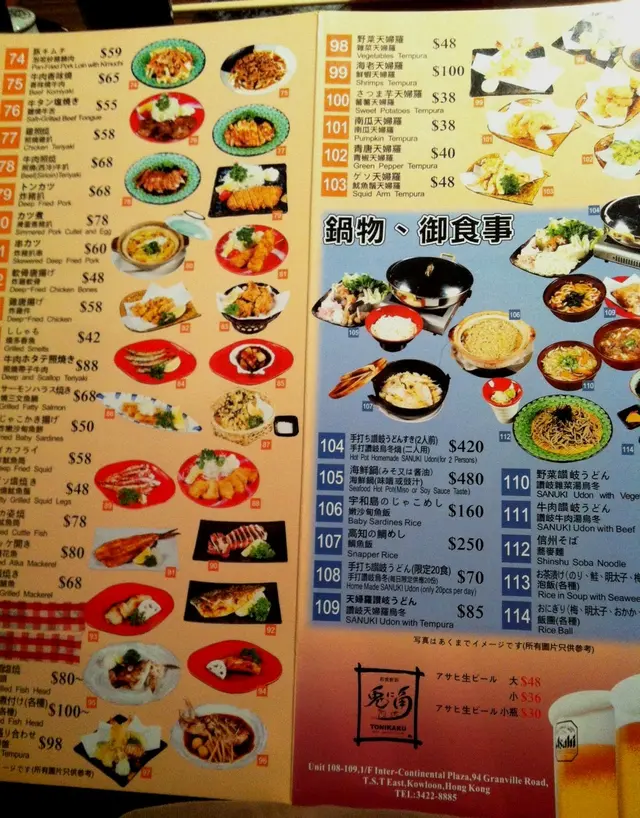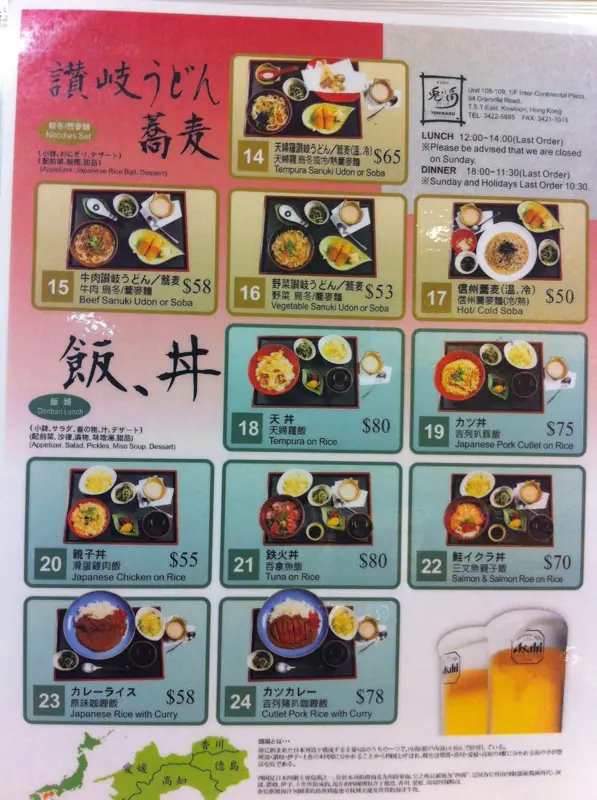 新一年第一餐飯,朋友提議吃日本菜並由他請客慶祝2013。我負責選擇場地,因豪無頭緒,於是用Openrice搜尋尖沙咀一帶餐廳,見兔角有不少好評,便選擇它。當日中午,我致電訂座,接聽的女士說了一大堆日語,並不懂廣東話,而我又不懂日語。我跟她說英語,雖然她用有限度的英語努力和我溝通,但同時亦顯得非常有禮。餐廳位於尖東一個不知名的小型舊式商場,位置有點隱蔽。到達餐廳,拉開敞門,一名男店員帶領我們到玻璃窗旁的座位就坐。其他店員遞上餐牌和熱茶,以及放置一塊寫上當晚時令菜式的白板在我們旁邊。標準餐牌前後兩頁,彩色印刷,食物種類繁多,幾乎所有居酒屋應有的食物都可在這裡找到。我們從標準餐牌選了牛肉烏冬($70)、鯛魚飯($250)和炒野菜($46),另外從白板選了三文魚腩刺身($90)及海膽魷魚刺身($60)。當我們點鯛魚飯時,女服務員說:「40 minutes」,我們明白到這是要等40分鐘的意思。我們心想,要烹煮40分鐘的飯,肯定非常惹味。這兒的店員應該全是日本人,他們全都非常有禮貌,服務周到,亦懂得說一點點英語和廣東話。當晚是星期六,餐廳十分熱鬧,有日本藉的客人,他們的歡笑聲、用日文對話的談話聲再加上日藉店員忙於招呼食客,有一種身處日本的感覺。裝修有日本風格,以棕色木材為主,但略為陳舊及過時。此外,有紙箱疊高至天花板,收銀機附近的雜物眾多,有點凌亂。不一會,兩款刺身送上了。三文魚腩刺身切開5件,厚厚的,油脂充足,脂肪在口腔內爆開,味道極為濃郁,但刺身略為不夠冰凍。海膽魷魚刺身放在圓形的小碟子上,它們連同醬油攪拌了,魷魚爽口,不算堅韌,而海膽新鮮,十分開胃。炒野菜材料以棷菜、芽菜、紅蘿蔔絲和洋蔥絲為主,入口不夠熱,只屬溫暖。蔬菜炒得尚算爽口,但紅蘿蔔絲像沒有煮過一樣,仍然很硬。醬汁不夠多,令蔬菜太乾身。此外,份量太少,我們每人夾了一些炒菜後,已幾乎把它吃光了。這碟炒野菜稍為令人失望。過了大約10分鐘後,侍應捧住牛肉烏冬前來,亦主動給我們兩隻碗,好讓我們容易分配。先試一試湯底,味道清甜而不肥膩,透明清澈而且溫度極高。牛肉大約有8-10片,切得比較薄身,牛肉味不夠濃,亦不夠嫰滑,質素普通。烏冬質感結實,但咀嚼時不至於太硬身,而且它即使浸在湯底久了亦不會化成麵團。由落單至現在已過了接近一小時,但仍未有我們期待的鯛魚飯。我們揮手提醒店員,但似乎那些分隔座位的屏風把我們遮擋了,揮了接近5分鐘才有人留意到我們,而他們亦意識到我們尚欠鯛魚飯。一女侍應前來連忙說對不起,說今晚剛巧有數枱客點了鯛魚飯,我們的鯛魚飯拿了給另一枱客,她說再過多5分鐘便可享用。不一會,鯛魚飯來了,它用一個巨型的金屬鍋盛載,女侍應一打開木蓋,一陣濃煙湧出來,香氣四散。內裡有一個鯛魚頭、一些鯛魚肉和一段魚尾。女侍應先挑起魚頭、魚尾和所有魚骨放在一隻碟子上,剩下魚肉在飯面,然後把魚肉和飯攪拌,便可進食。飯粒熱呼呼,呈淡黃色,有點濕潤,幾乎每一粒的顏色和質感都煮得一模一樣,十分均勻。每一粒米飯都沾了魚汁的味道,入口甜甜的,暖胃飽肚。魚肉的味道有點兒像鎗魚,但味道更鮮甜,而質感比石斑還要嫰滑。我們把連著魚頭、魚尾和魚骨的肉碎都沒有放過。正當我們享用之際,一名中年男店員(他沒有穿制服,很可能是老闆)向我們連忙賠個不是,態度誠懇,我們當然不會介意呢!這個金屬鍋盛載的飯份量非常多,可以足夠超過兩個人食用。我們起初以為會吃剩,打算用外賣盒拿回家吃,但其後發覺意猶未盡,最後把它吃清光! 不過,鯛魚的份量極少,覺得不太抵吃。最後,我們吃得非常飽,挺著大肚子漫步尖東。查看更多