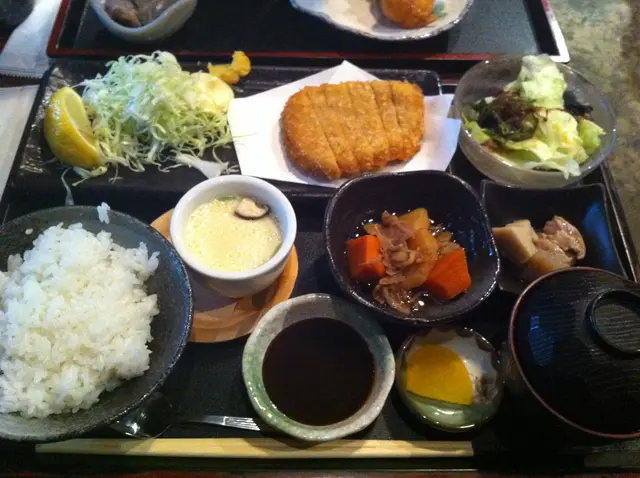 衫次寫食評...妹妹返公地點約我食lunch, 提過此餐龐食物不差可以一試我叫了一個吉列豬扒定食.又真係幾好味侍應送了一盤大盤定食。當中包括麵豉湯、小吃、蒸蛋及沙律,一大件吉列豬扒及一大碗飯.。沙律菜很新鮮, 麵豉湯欠湯料.飲落亦不夠熱. 蒸蛋不夠滑身,蛋味不足. 吉列豬扒相當不錯.食落外脆內嫩.肉身又夠多汁.外面又不會過分多油. 本人覺得飯是中國珍珠米. 此價錢可以接受.總括食飯質素不差,侍應亦有禮貌. 下次可以再試其它.查看更多
