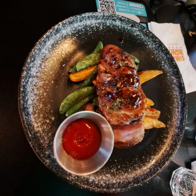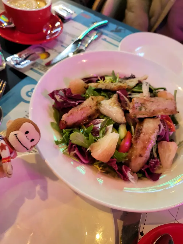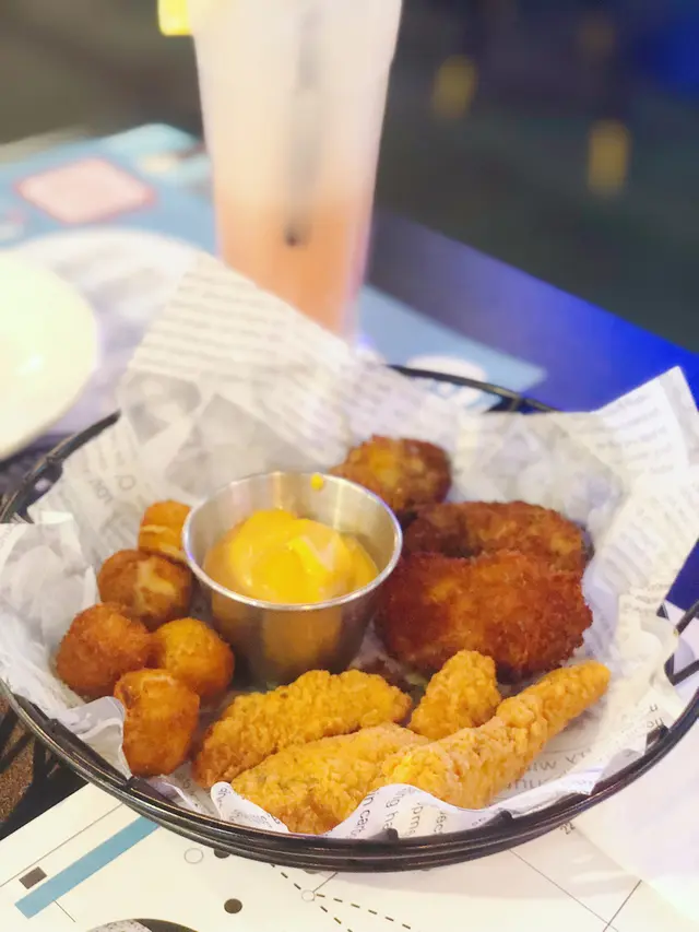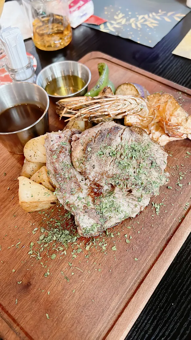 美孚高質西餐廳比較少,一般都是街坊茶餐廳,需呢間真係少數好食又好玩的。餐廳入口在平台,唔係專登上來根本見唔到,但一入門口隻恐龍🦖仔係好好打卡位置。餐廳可以帶主子,有竉物點心賣。一邊係室內草地滾球場(會員制),另一邊有飛鏢(要買點數卡)&街機(免費),大人細路都玩得很高興😊。🍴沙嗲牛肉拼雞肉全(各3串):個串燒好香,沙嗲好惹味,牛肉一口咬落去仲好有汁,真係太少唔係好夠喉😅🧇🍫迷你Oreo朱古力窩夫:窩夫烤到香香脆脆,朱古力味又夠濃,配埋雪糕冷熱膠戰,真係冇得頂👍🏻🧇迷你棉花糖焦糖蜜瓜窩夫:窩夫當然係又熱又脆啦,今次配蜜瓜就清新好多,而且蜜瓜夠清甜,好開胃😋🧋下午茶時間仲會每樣嘢食包一杯飲品,真係好抵喎!一路食你可以一路睇人打滾球,咁啱當日有比賽,可以收到好多專業知識,真係大開眼界!…查看更多