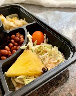 在mee上见到附近这间外卖店就一定要帮衬下啦,美食荒漠的良心小店好珍贵哒💛menu选择很多,丼饭便当炒面还有各种小食,我选了台式卤水鸡腿便当,想再试多一个小食就选了名字有点特别的超级春卷😝一份便当包括卤鸡腿,米饭,卤蛋,小菜,沙律,份量适中,鸡腿的皮最有滋味😋肉也很滑嫩,不过比起皮来就略显不够入味?饭上淋的汁倒是足够,用汁把饭拌起来跟鸡肉同吃就比较好噜~我个人觉得饭如果再稍微软一点点我会更喜欢,现在颗粒感比较重🙈小菜沙律和卤蛋都正常水准,沙律里的应该是台湾凤梨吧😆超级春卷倒是很有意思,细长一条,略粗过手指?打开就闻到淡淡虾肉香,咬下去里面是虾肉和椰菜,馅料调味适中,吃起来也不油腻,不错喔😋台式卤水鸡腿便当 7.0/9超级春卷 7.0/9OVERALL 7.0/9看review好像吉列猪排便当也不错的样子?有机会再试一下😋