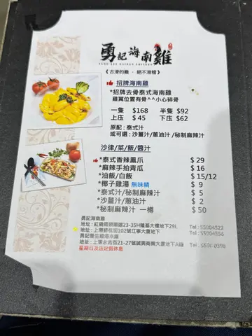 勇記海南雞 (红磡) 网址: https://s.openrice.com/QrLS0DrqA00 地址: 香港紅磡馬頭圍道23-35H號隆基大樓地下29L號舖 电话: +852 55004522