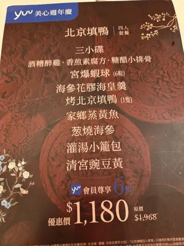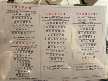 是日平日晚餐食中菜,一行4人左拣右拣最后决定了‘古都冷菜三小碟’,菜式如下:🥢绍兴酒糟醉鸡三小碟之一,鸡肉嫩的,有酒味,但味道比较单一。🥢葱油凉拌海蜇头无味。🥢糖醋小排骨肉质好硬。🥢油泡翡翠双鲜相对来讲味道淡。🥢婉儿鸡茸燕窝羹一般般。🥢松子黄花鱼味道开胃,黄花鱼炸完后,鱼肉质还可以。🥢烤北京填鸭(全只)不过不失。🥢宫廷四合蔬好普通。🥢北京炒拉面唯一有记忆点就是呢个炒面。🥢上官花素蒸饺饺皮正常发挥,但馅料就一般。🥢豆沙锅饼都唔错。🥢鲜奶合桃露本身有啲期待,可惜唔够滑,稠度比较稀。…查看更多