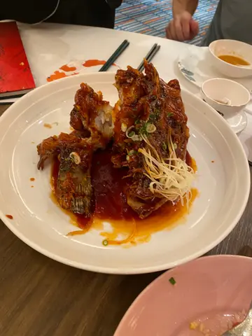 同屋企人去咗德福广场嘅北京楼食晚饭,点咗几款唔同嘅菜式,几好食!翡翠龙凤羮系亮点,店员喺枱前将白绿羹倒成太极图案,卖相靓到唔舍得饮!汤底清甜,味道虽然偏淡但好顺口,饮落好舒服。和菓子草莓虾外层炸得金黄酥脆,虾肉嫩滑,份量多到有 7-8 粒,食得满足,虽然外型似荔枝多过和菓子,但味道真心唔错!云腿糟蒸黄鱼就略为失望,云腿涂蜜汁好甜好香,但黄鱼蒸得过熟,肉质干柴又有啲油腻,略为扣分。服务员好亲切,上菜快,仲会主动帮忙添茶。餐厅环境干净企理,虽然系传统酒楼风格,但坐得舒服。整体嚟讲,除咗黄鱼稍为失色,其他菜式质素高!…查看更多