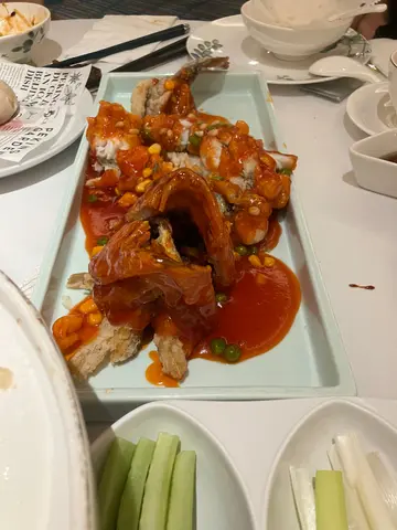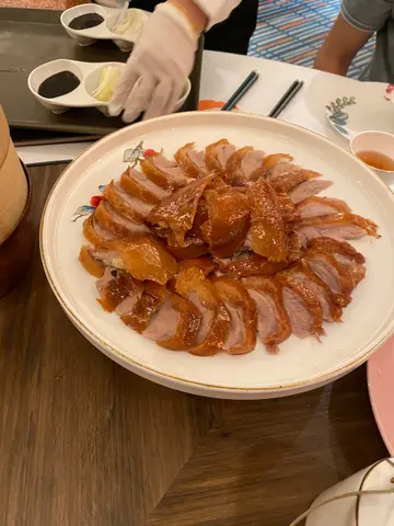 今日叫咗呢度比较出名嘅几个特色菜:1.片皮鸭($398)包片皮鸭嘅皮会员有火喺下面heat 住,keep住热同有弹性,夹埋d 葱、青瓜,同埋酱,好味!😋2. 小笼包($88)有汤汁,皮唔厚,有弹性,但又唔会好易穿,有水准。3.回锅肉($168)分量充足,比较重口味,会适合送饭食,味道配搭都几好👍4.松子鱼($398)甜酸汁配落去炸鱼𠮶度,啱啱好,脆口而且唔会太油,相信都系即叫即整。鱼尾嘅部份特别脆,成条都食得饭🤩5.炒羊肉($168)香口,味道搭配好,唔会太有苏味,唔太钟意羊味嘅都Ok.6. 锅贴正常水准,都不错😄但个人会比较喜欢小笼包。题外话,佢晚市仲有拉面表演,几有气氛…查看更多