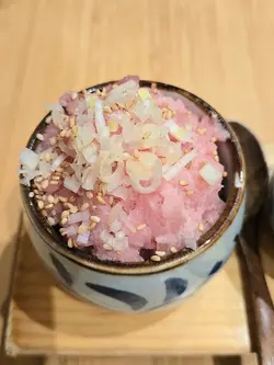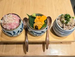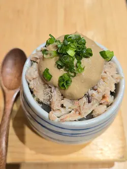 三色丼 · 分食的仪式感吞拿鱼蓉、海胆、蟹膏蟹肉分装在三只小碗里上桌,这个细节很贴心。吞拿鱼蓉拌了少许酱汁,柔滑不腥;海胆鲜甜,蟹膏蟹肉浓郁,咸鲜恰到好处。你可以自由搭配,也能品味每一种食材的本味——我喜欢把海胆留到最后,像甜点一样收尾。鳗鱼饭 · 温柔的酱香鳗鱼烤得边缘微脆,肉质依然柔软。酱汁不会过甜或过咸,和鳗鱼的油脂平衡得很好。米饭吸收了酱汁和鱼香,不知不觉就见了底。鲭鱼饭 · 简单的美好鲭鱼烤得皮脆肉嫩,鱼香明显但不腥。配着姜丝和米饭,是那种简单却满足的定食,适合不想思考吃什么的中午。烤猪颈肉 & 牛舌 · 火候的诚意猪颈肉弹牙多汁,牛舌厚切却嫩,两种都只撒了薄盐调味,能吃出食材本身的质量。火候掌握得很好,没有焦苦,只有炭香。