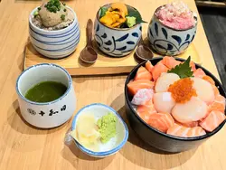 今日休息都在尖沙咀吃晚餐成日都经过呢间 十和田总本店,今次终于入去试下我们品尝了:三色丼(人气日式丼饭)一次能品尝三种不同口味的配料,厚实的吞拿鱼蓉,入口即化;新鲜的海胆,口感丰厚;蟹膏蟹肉,充满浓郁的蟹鲜味,份量大方。三文鱼帆立贝鱼子丼鲜美的切块三文鱼;帆立贝口感软嫩,味道鲜甜;晶莹剔透橘色的鱼籽,带有浓郁的海洋风味。呢间真系真心值得推介的日料餐厅🤩十