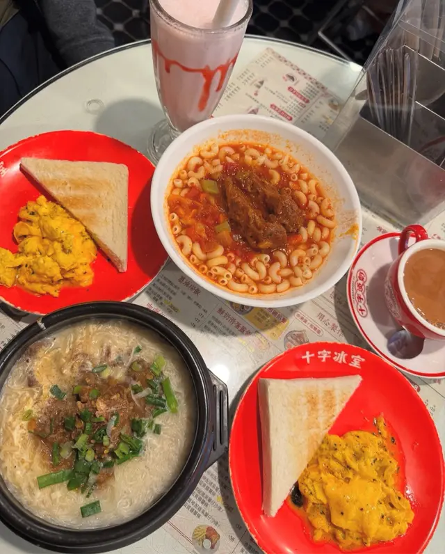 主打十字奶嘅茶记铺头系高街📍由正街搭电梯上去再向西边街方向行会比较轻松🫡睇过佢餐牌觉得早餐同下午茶比较啱食😋除咗一般茶记嘅沙嗲牛 五香肉丁🍜, 呢间多啲怀旧特色野 饮品都多款拣早餐时段除咗抵食仲比较少人11:30前要去到啦!今次食咗牛奶猪骨汤肉丁米餐, $4X就已经有埋炒蛋🍳 火腿 多士🍞仲包热饮💯真系平过一般大型连锁茶餐厅牛奶猪骨汤好似系个signature🥹但就比肉丁盖过咗 下次拣过第款再试!!😜野食质素同份量嚟讲都同普通茶记差唔多🤔最出色系杯奶茶呀之前都听fd讲过呢度奶茶好饮 原来真系同其他好唔同好饮好多 饮1杯真系会唔够喉!!呢个系下午茶餐🙈叫咗咸牛肉治🥪 宜家好似好少见啦 餐饮加钱($2X)叫咗木瓜milkshake🥤唔好以为就咁一份包唔饱😂份量好够 4块包都好厚 set原价~$4X 都抵食杯milkshake冇乜特别 亦都唔系特别大杯 属于偏稀 饮完成杯都唔会好漏🤔对比起都系热奶茶稳胜💯💯😛包类系其他时段都有得散叫 但就野饮都要散叫啦🫡个人认为早餐menu最多选择又抵 为咗杯奶茶早起系值得㗎!!🥹餐厅座位都算多 不过有啲密🙈但我非繁忙时间去 所以上餐算快 staff都几好礼貌查看更多