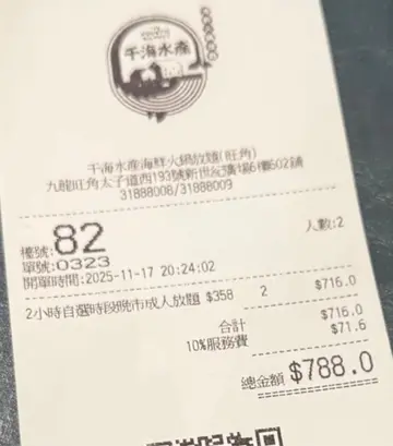 旧同事Michelle今个月生日,我哋约咗佢今晚庆祝生日,原先都系谂住选择习惯性去开的食肆,点知Michelle建议嚟呢度,我哋不妨试吓!我哋book咗晚上七点,我6:50第一个来到,点知原来依然要排队的,搭正七点接待处就放啲客人入去,由于佢哋两个迟到少少,我就影咗个QR code研究吓餐牌有乜,火锅汤底方面可以选择的有鸳鸯汤底(可惜没有列出它们的名称,见到其中一款铺满干辣椒就唔敢叫)、椰子鸡汤(点咗呢个),沙嗲锅(屋企成日整,所以唔叫),冬瓜瑶柱猪骨汤,蕃茄猪骨汤汤底,黄金花胶鸡汤汤底,胡椒猪肚汤底。首先我拎起一张环保袋质料做的口水肩,系防止食火锅𠮶阵时弹污糟自己件衫的,枱面有一樽用一个有耳仔的玻璃水樽装住嘅白色的水,原来是补充汤底的汤(什么汤底也加入这只汤补充水干),外面近比客人洗手的两个洗手盆有一架车仔放咗除咗呢啲汤之外仲有水,每次食到只手污糟或者攞咗生嘢之后惊交叉感染就喺度用泡沫枧液洗手。食客要攞枱面𠮶个不锈钢筒去海鲜档自己拣海鲜捞,有两款蚬/花甲,东风螺,蓝色的花蟹,三点蟹,大头虾,海中虾及基围虾,然后交俾海鲜档的职员交换一个号码牌,等大概8分钟之后攞号码牌去海鲜档攞返海鲜档职员帮我哋洗刷干净及斩开一半的蟹,然后加入火锅之中。喺自助食材材料盘之中可以拣嘅火锅材料好多,我好钟意鹅肠,其他有啲一般冻肉舖买到未试,但系蔬菜嘅款式比其他火锅店多两倍,好多都噏唔出个名(建议店家列出要烚的时间就Perfect了),我食咗好多菜。火锅牛肉和羊肉要另外点的,价钱包埋,不需另外付款,质素都唔错,可以点的熟食也有很多,自助餐枱的熟食也有,甜品也有,不过我个人兴趣不大。但系其实两个钟真系食唔切,除非唔讲嘢,不过都食得饱!饮品方面好多选择,只系试咗杨枝甘露和青桔仔饮品,真系好饮到飞起!不过就甜咗啲啰!因为我食饱先饮嘢,所以最后攞咗两支嘢饮走,细细支真系识谂!埋单每人$394。经过今次嘅经验,我哋第日会选择星期六日或者假期嚟食午餐,因为可以食足四个钟,可以吹埋水,今次唔讲得几多嘢;如果嚟食晚餐的,也想到一系列的策略,例如叫啲friend唔好迟到!总之,呢间嘢值得经常嚟encore!对面𠮶间Outback揾只鬼影见吓都冇,呢间就排晒长龙。…查看更多