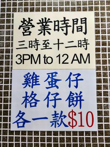 今日系石硖尾南山邨「寻宝」,揾到一间小店,下午三点先开门,传统街头小食,价钱平!🥮 传统格仔饼(只系$10!)块面金黄香脆,内里仲保持到微微软身,满满鸡蛋香同花生酱➕炼奶➕砂糖香,热辣辣食最正,10蚊真系无敌🐣 外脆内软鸡蛋仔(一样$10!)一出炉即刻闻到阵阵蛋香,每一粒都超脆口,掯开仲有烟出!内里软绵绵又带少少弹牙石硖尾街坊,或者想食返儿时味道朋友$20食到两款经典街头小食👍…查看更多
