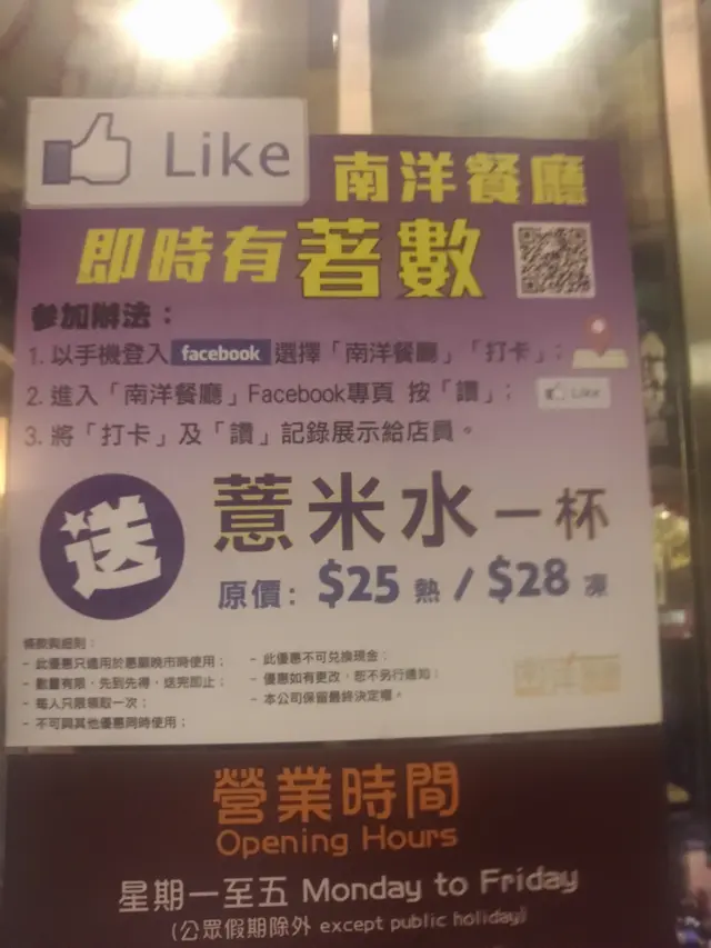 南洋餐廳 (香港仔) 网址: https://s.openrice.com/QrLS0ucW100 地址: 香港香港仔舊大街56號美倫閣地下 电话: +852 3106 0780