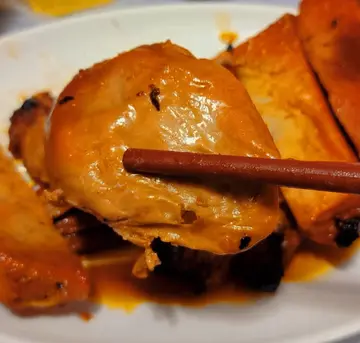 食完烧鸡,又食埋甜品,尾站斩料今晚做𩠌。点解专登嚟呢度斩料?因为前排睇谷导嘅「消失的味道」,其中有一集讲金钱鸡(回想最后食呢味嘢已经系廿几年喺旺角食过,但间烧腊舖亦已经执咗N年了)。另外节目中亦介绍另一款怀旧菜:鸭脚札,于是记低有机会揾日去买嚟回忆一吓。既然去开红磡,当然顺道去买啦。金钱鸡($98/斤),买咗一份;鸭脚札($98/斤),买咗两札,接近两斤,总共$190。金钱鸡,有冰肉(2件)、叉烧(2件)、鹅肝(1个)。冰肉,即系肥膏,爽口,但只可浅尝一小口。叉烧,瘦叉,干身。鹅肝,一大个,粉嫩软滑。鸭脚札,比想像中大旧,份量比一个成年男子嘅拳头还要大。材料有数条鹅肠札住鸭脚(1只)、叉烧(4件)、烧排骨/烧腩肉(1件)、烧鸭(2件)、烧鸡(2件)、鹅肝(1个)、火腿(1件)、芋头(2旧)。老实讲,味道全部都系一种味,就系蜜汁叉烧嘅味,里面啲材料嘅质素都极之普通,系个鹅肝OK啲,同金钱鸡𠮶件一样,粉嫩软滑。食完今次,之后会唔会再(想)食?机会应该低啲嘞。因为呢类食品,味道及口感真系唔算好食,况且年纪再大啲的话,接受呢味嘢(胆固醇)嘅能力又再低啲。儿时回忆的味道,有时候保留在记忆中不失为一个好嘅选择。…查看更多