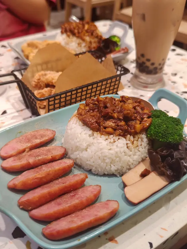 今日同朋友嚟到旺角呢間開業半年嘅台灣餐廳,中午十二點幾已經全場爆滿,等咗十分鐘先入座。店員招呼夠熱情,環境光猛乾淨,成個場人聲鼎沸,睇嚟係隱世實力派!我點嘅「台式香腸滷肉便當」一上枱就知無揀錯——滷肉份量絕對唔係隔離街啲「孤寒舖頭」比得,滿滿哋鋪响珍珠飯面頭,膠質多到黏嘴唇!香腸咬落甜中帶酒香,同喺士林夜市食到嘅一模一樣。最正係啲汁撈埋煙韌珍珠飯,掛汁能力滿分,食到尾都唔會變湯飯。配菜有爽脆木耳、滷豆乾同灼西蘭花,平衡返個油膩感。朋友嗰份「鹽酥雞球滷肉便當」都唔輸蝕,偷咗舊雞球試,外皮脆到嗦嗦聲,入面雞肉醃得夠透,咬開仲有肉汁滲出嚟!追加嘅炸魷魚更加係驚喜之作,魷魚炸到金黃,外層脆粉薄薄哋,裡面魷魚鬚彈牙到識跳舞,呢種口感喺香港真係未遇過,完全係台灣夜市檔口水准!當然唔少得靈魂飲品珍珠奶茶!茶味濃得嚚唔澀,奶香夠滑,珍珠煮得啱啱好,咬落去又Q又糯。兩個人食到捧住個肚走,喺而家香港絕對稱得上高性價比。如果想搵間唔使飛台灣都食到正宗台味,呢間絕對要放入口袋名單!(後記:臨走見到隔離枱叫咗碗牛肉麵,啖湯睇落好濃郁,下次一定要試!)…查看更多