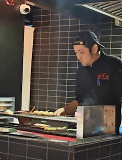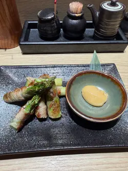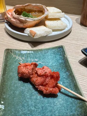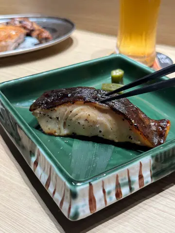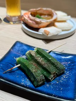 䢂门一开,炭香迎面扑来。围坐桧木吧台前,看著师傅专注翻动串烧的火光,彷佛置身日本的深夜食堂。饮品:🍯 柚子蜜苏打:柚香如烟花在舌尖绽放,蜂蜜的温润恰好抚平夏夜躁气。🍊 柑橘可尔必思:乳酸菌的酸甜与柑橘清新共舞,所有暑气消散殆尽。炭火绽放▪️ 芦笋猪腩肉:甘肥猪腩肉缠绕碧绿芦笋,炭火将肉脂逼入蔬菜纤维,咬下时爆出双重鲜甜。▪️ 盐烧猪五花:厚度恰好的五花肉烤出琥珀色脆皮,蘸点山椒粉入口,脂肪香气与麻辣感在鼻腔共鸣。▪️ 鸡肉棒棒配日式鸡蛋:手打鸡肉混入软骨碎增口感,蘸取橙黄蛋液后更显温润,是居酒屋的灵魂之作。▪️ 青椒仔: 翡翠色外皮烙上斑驳虎纹,香脆可口 。▪️ 黑鳕鱼(西京烧):味噌腌渍两日后炭火轻炙,鱼肉如云絮层层化开,甘甜余韵萦绕不散。▪️ 大鸡髀(切件):师傅刀工精准将鸡腿肉切成适口大小,皮脆肉嫩还锁住丰沛肉汁,贴心处理尽显匠心。关东煮の抚慰🍢 大根:炖煮三小时的萝卜如琥珀通透,用筷子轻夹即断,吸满柴鱼高汤的温柔。🍢 炸豆腐:金黄豆皮如海绵饱吸汤汁,咬开时迸出豆香与高汤的双重奏。终章美味🍚 鲑鱼亲子丼:醋饭铺上炙烧鲑鱼与晶莹鲑鱼卵,鱼卵在齿间爆裂的瞬间,为今夜画下华丽句点。…查看更多