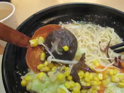 很久沒有食味千拉麵,見無人等位,於是就入去叫咗個163元啲2人套餐!2個小吃、2罐七喜加2客拉麵!唔知係咪好耐無食,今次食番好似無想像中差,小吃叫咗個蟹肉蟹籽沙律同日式餃子,餃子煎香個底,所以食落個底幾脆,D皮適中和夠熱;沙律味道一般,偏酸,好彩夠凍,蓋咗D酸味!拉麵叫咗本格豚肉組拉麵及骨雷拉麵,骨雷同豬軟骨差不多,都係肉與軟骨相連,煮得夠淋;味道唔錯,可惜湯底太肥,拉麵D麵質比較實,唔夠爽口同彈牙!隻溫泉蛋太熟,食落似自己拾熟啲蛋分別不大。本格豚肉得2片,好彩夠大片,味道比較清,似白拾咁,—般。整體不過不失,不過都會隔—段時先會再試。…查看更多