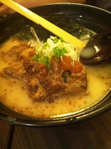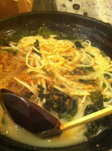 一直以黎每次一讲到猪软骨,我都觉得味千拉面o既猪软骨拉面系最好食o既今日黎到钻石山经过味千拉面就好想食,唔需要等位就入得去喇 ,呢度座位都几宽阔,我唔洗睇个menu就已经order左猪软骨拉面喇拉面上枱o既时候好热辣辣,仲见到出紧烟!正合我意 !!呢个拉面既配料有昆布,芽菜,香葱等,整相整齐有条理可见师父都系有舖排地放配料,呢度其中一样野令我好钟意o既就系有我最钟意o既蒜粉可以自行调较味道 , 落o系拉面度 , 令拉面汤底更香浓之余有少少脆卜卜o既野蒜粒赵下,好有口感猪骨汤底望落去好似有d油,但饮落去并无太腻o既感觉猪软骨肉质软淋 , 仲煮得好入味 , 软骨部份更是我最爱,平时食o既多数都只能够做到爽口o既感觉,而呢一个就好特别,口感好似好淋既牛筋咁,充满骨胶原,几乎到逹左入口即溶o既境界至于配料既芽菜同葱就令呢碗拉面生色不少,因为两者都好爽脆,配合埋拉面入口令口感更佳!昆布味道无咩特别 , 都系一般干货但我认为作为日式拉面必定要有昆布先至带出度o个种特式风味拉面软硬度刚好,口感烟靱弹牙,不过味千啲拉面硬系粉粉地 ## o系热潮仍然著重于正宗拉面小店之时 , 味千的确略逊一筹不过始终食左咁多年 , 同味千猪软骨己经食出感情来 , 笑脸少不免…查看更多