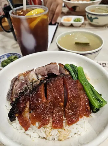 住得荃湾,就知道其实都几多烧味档之前成日都买$20一盒街市𠮶啲烧味饭抵就真系好抵,但啲叉烧系冇乜蜜汁味所以今次都好惊喺荃湾食烧味会中伏上网search呢间系出名食烧鹅嘅都系抱住试吓嘅心态当日系8号风球落波冇耐餐厅系冇乜人嘅,但唔知系咪因为咁真系好足料啊!!!虽然堂食冇乜人,但系其实都好多人买外卖因为外卖只系$45,但我都系钟意堂食热辣辣都系$60其实佢可以双拼拣红肠熏蹄但感觉上叫肉会抵啲😂😂😂结果两个人都系食叉烧烧鹅饭同店员讲饭要多汁,真系都好多汁,超级正因为我平时只会食有汤嘅嘢,唔钟意食白饭,除非炒饭或者有得捞汁所以见到佢咁多汁,真系好开心Read More