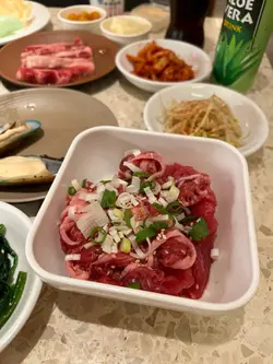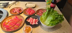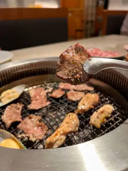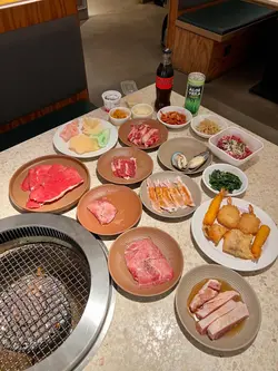 好耐無食燒肉, 見呢間有任食用openrice 又可儲里數就試下啦~ book左13:30去到13:36, 前一入坐係walk in無book枱即入, 我book左枱反而要等等。。。。個下反應係。。吓 哦。。。不過都5分鐘內有枱既。。。本身想揀$198任食, 但見佢有$98(75分鐘)及$148 (120分鐘)任食, 由於唔太肚餓就揀左$98算。種類都算OK, 我地主攻食牛, 其他豬及雞都無揀, 有蔬菜又有湯麵, 自助BAR枱有白飯有和牛肉燥自己加,汽水係枝裝,有其他冷飲揀下, 有熱茶有咖啡機。最後埋單無加一, $98有得燒下肉, 滿意!…查看更多