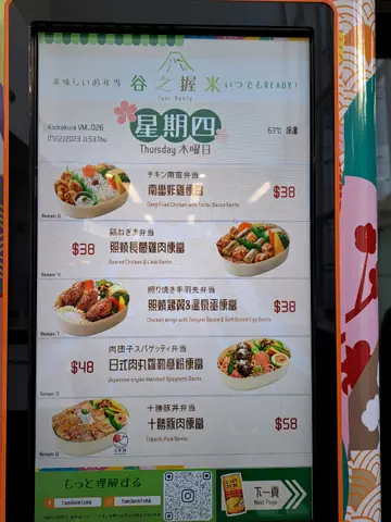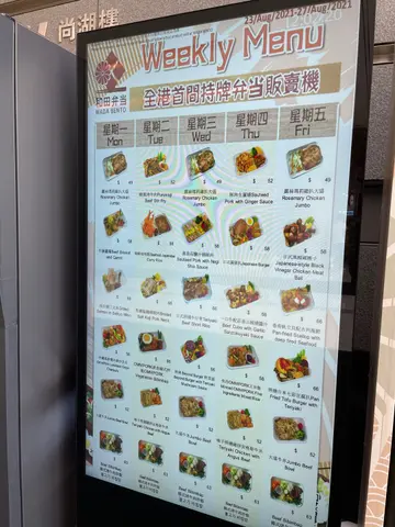 每日嘅餐牌都唔同,要上网睇定或者黎到先拣,呢部机真系好方便,带张八达通就买到盒热辣辣嘅便当,仲有有专人喺隔离协助