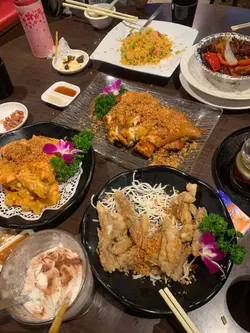今日同几个朋友去返学生时期嘅回忆饭堂——南山邨品香楼,呢度一直系城大学生嘅抵食之选!四个人嗌咗几款招牌小菜,水准依然保持到。🐟 椒盐九肚鱼即叫即炸,外皮脆到嗦嗦声,入面鱼肉嫩滑到几乎入口即化!椒盐份量啱啱好,咸香惹味,送啤酒真系一流。🐔 风沙鸡(半只)皮脆肉嫩!鸡皮炸到金黄香脆,洒满蒜酥同炸蒜粒,食落嗦嗦声。鸡肉保持到肉汁,唔会干柴,连胸肉都入味。🔥 火焰蜜椒牛柳粒上枱时点火表演视觉满分!牛柳粒啖啖肉,外层微焦,内里软嫩多汁。蜜椒酱甜中带少少黑椒辣,非常开胃,连洋葱同青椒都炒得好入味。🍫 冻朱古力估唔到中式小炒店都有惊喜!朱古力味浓郁唔假甜,冰凉顺喉,食完浓味小菜饮即刻解腻。…查看更多