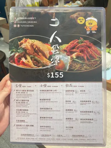 见到餐厅门口及店名几有趣🤭餐牌上有一人或二人套餐包括有主食,小食及饮品每人平均都系$𝟙𝟘𝟘之内🤑价钱好抵食😍同朋友叫左二人套餐来试试😂二人套餐 $𝟙𝟝𝟝+$𝟝主食 x 𝟚辣𝕋𝕌𝕋𝕀鸡配厚切豆腐粟米饭🌶️🍗🍚𝕋𝕌𝕋𝕀鸡是招牌菜之一,𝟚件鸡下髀皮光肉滑,好容易拆件啖啖肉,配上𝕋𝕌𝕋𝕀秘制酱汁微辣带点甜,半只溏心蛋🥚熟度刚好,蛋香味浓,厚切豆腐口感嫩滑,加$𝟝转粟米饭🍚,虽然食唔到粟米味,但口感烟韧有嚼劲😂啖啖辣𝕋𝕌𝕋𝕀鸡肉捞面🌶️🐔🍝捞面的酱汁份量都算多,辣鸡肉撕成一小块,配上青瓜丝🥒可减低辣度,但面条较为淋身,结成团好难夹黎食,估计可能煮面时没有过冷河影响面条口感这点较为逊色,但味道我也是喜欢的💕小食 x 𝟜牛肉薯仔饼🍘除左薯仔外仲拌入牛肉,煎得香脆内软,不过外边略为硬凉拌手拍青瓜🥒青瓜口感爽脆,味道微辣惹味惹味唐芹拌豆筋🧆点了𝟚份,豆筋口感扎实,配搭唐芹及辣椒,以作开胃小菜饮品 x 𝟚冻菠萝青柠蜜🍹味道不过不失,可以免费转饮都好抵👍…查看更多