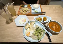 經朋友介紹之下,來到了這間裝修十分之新穎的食店,嘗試一下東南亞的風味.餐廳環境佈置十分之明亮,衛生也十分抵讚.木瓜椰奶雞髀飯,充滿了淡淡的椰香味道,入口雞肉十分之細滑,水準十足,加上白飯粒粒分明,配上椰汁,簡直是最佳送飯之選.喜歡吃辣的人仕,就一定要嘗試這個辣雞髀飯,辣雞十分刺激,配上精美的糖心蛋,真是令人幸福!另一個驚喜之選,就是即叫即走的馬拉盞炒通菜,鑊氣十足、大家記得要嘗試牛仔薯餅,令人十分懷念兒時的味道,坊間也十分之少,有這一個薯仔餅了,令人回味十足.查看更多