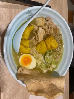我今晚同女友去咗上環嘅「嘟啲雞」餐廳,真係令我大開眼界!食咗一份套餐,有木瓜椰奶雞髀肉飯同埋麻辣伴芽菜,仲有一塊超級香口嘅牛肉薯仔餅。但係最令我驚喜嘅係印尼雞湯米粉配大蝦片!話說返嚟,我哋先試咗木瓜椰奶雞髀肉飯,飯粒飽滿,髀肉滑嫩多汁,啱啱好。加埋一塊牛肉薯仔餅,薯仔蓉香脆,牛肉鮮嫩,整個味道好平衡。不過,真正嘅驚喜係未嚟呢!嚟到印尼雞湯米粉配大蝦片,幾正。湯汁鮮甜,大蝦片嚟咁新鮮,加埋彈牙嘅米粉,令我哋一啖接一啖,冇停過口。我真係唔記得食過咁好味嘅米粉啦!除咗呢啲主菜,我哋仲加咗一份馬拉盞炒菜,蔬菜配上辣味十足嘅馬拉盞醬汁,真係好開胃。而飲嘅涷菠蘿青檸蜜,清新又唔會太甜,好啱晚餐飲品。總括而言,「嘟啲雞」餐廳真係好好味,好風格,令我哋有一個好開心嘅晚餐體驗。下次我哋一定會再嚟試其他菜式,搵機會再嚟一次!查看更多