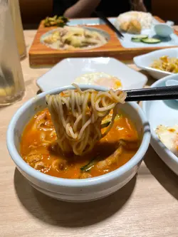 二人套餐($155)✨辣TUTI雞配厚切豆腐 餐廳特色菜,醬汁微辣帶有奶香,搭配大雞髀和豆腐,好惹味✨啖啖辣TUTI雞肉撈麵撈麵充滿醬汁,每一口都有雞肉和青瓜絲,口感豐富值得注意的是,這道麵的辣度相對較高,愈吃愈辣愈上癮小食:🪄牛肉粒粒薯仔餅🪄麻油香拌芽菜🪄惹味唐芹拌豆筋🪄涼拌手拍青瓜✨凍菠蘿青檸蜜帶有淡淡菠蘿味,青檸反而沒有太突出,非常清新解渴整體環境舒適,員工服務態度良好,meun有一/二人套餐,方便客人選擇,值得一讚的是餐廳無收加一服務費查看更多